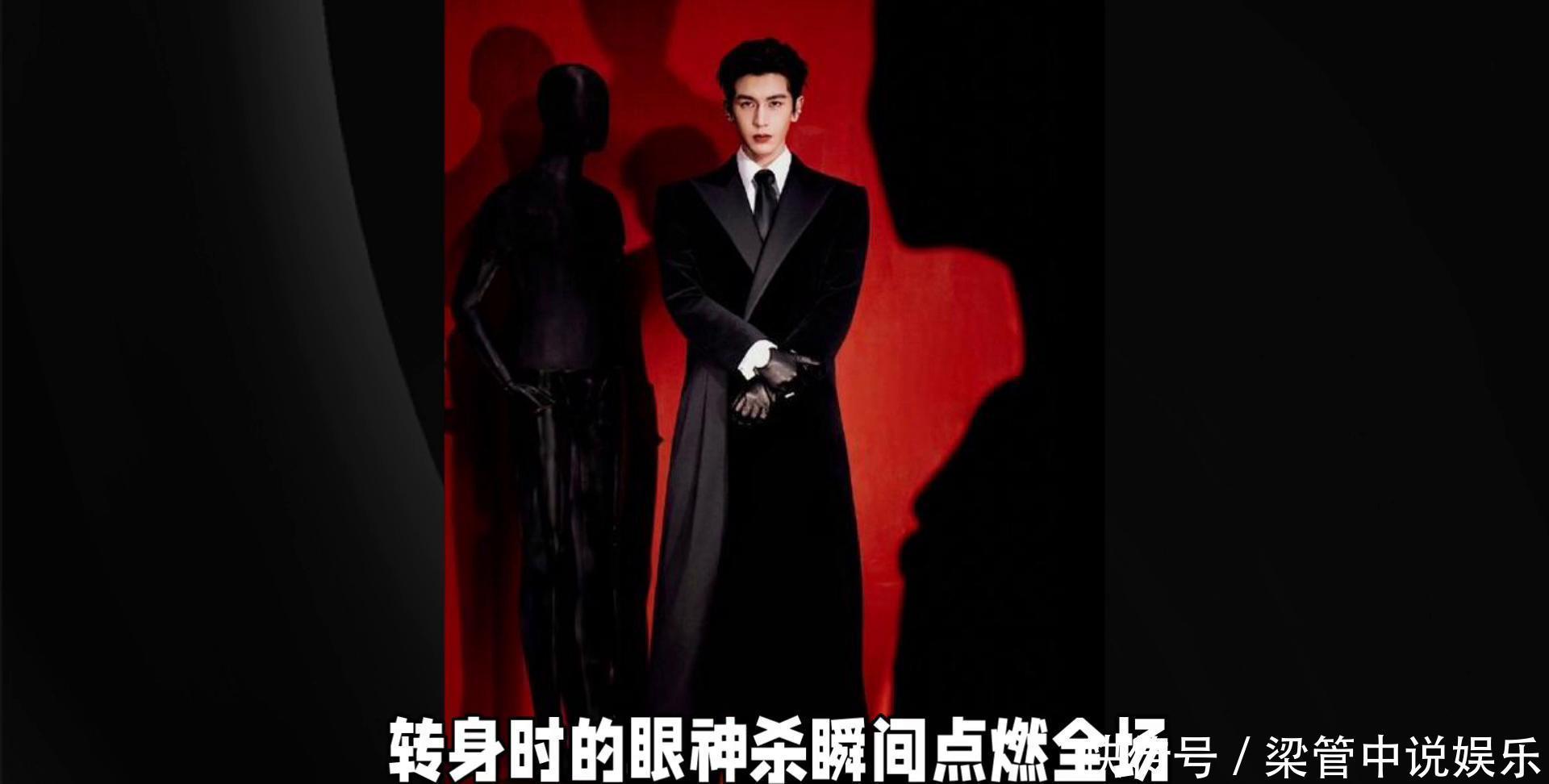一身XanderZhou定制黑红丝绒西装惊艳亮相,不对称剪裁搭配德古拉式高领,手持权杖如暗夜君主登场。红蓝撞色光影下,192cm的挺拔身姿步幅沉稳,肩线稳如磐石,转身时的眼神杀瞬间点燃全场。更绝的是冷峻禁欲风里的反差萌,挑眉一笑时梨涡浅现,甜酷切换让弹幕刷屏,这才是建模脸走进现实。